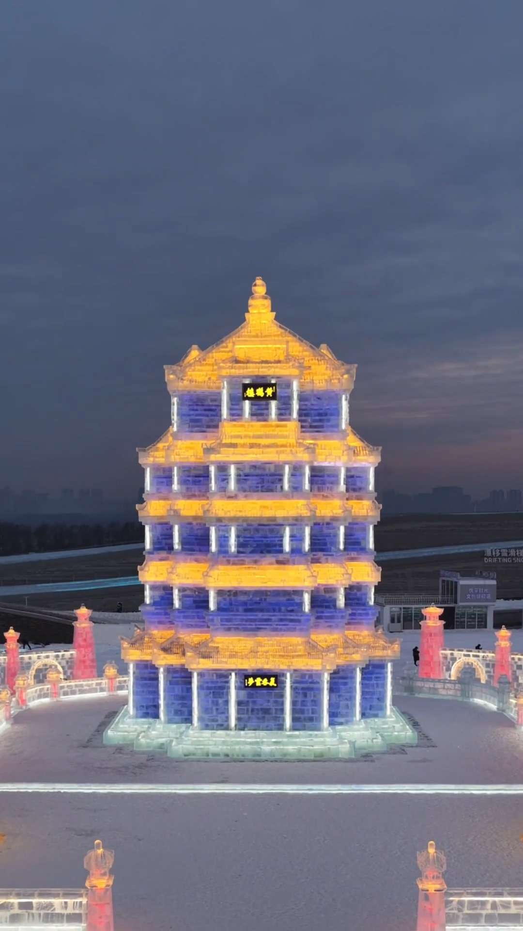 冰雕黄鹤楼亮相哈尔滨冰雪大世界